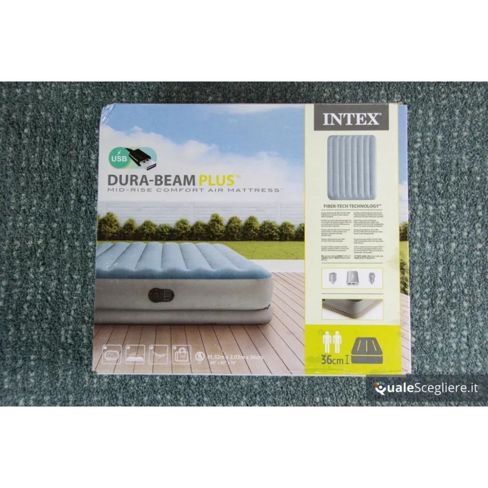 Eleva la qualità del tuo riposo con il Materasso Matrimoniale Intex Dura-Beam Mid-Rise Comfort 152x203x36 cm con pompa USB incorporata (modello 64159), ideale per accogliere ospiti o per dormire comodamente ovunque tu sia.