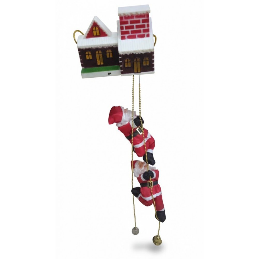 Il set è composto da un modulo principale a forma di casetta e comignolo illuminati, da cui scende una catenella o corda. Due figure di Babbo Natale (o una figura che si muove in modo da creare l'illusione di due) si arrampicano sulla catenella in un movimento continuo, simulando la salita o la discesa dal comignolo.