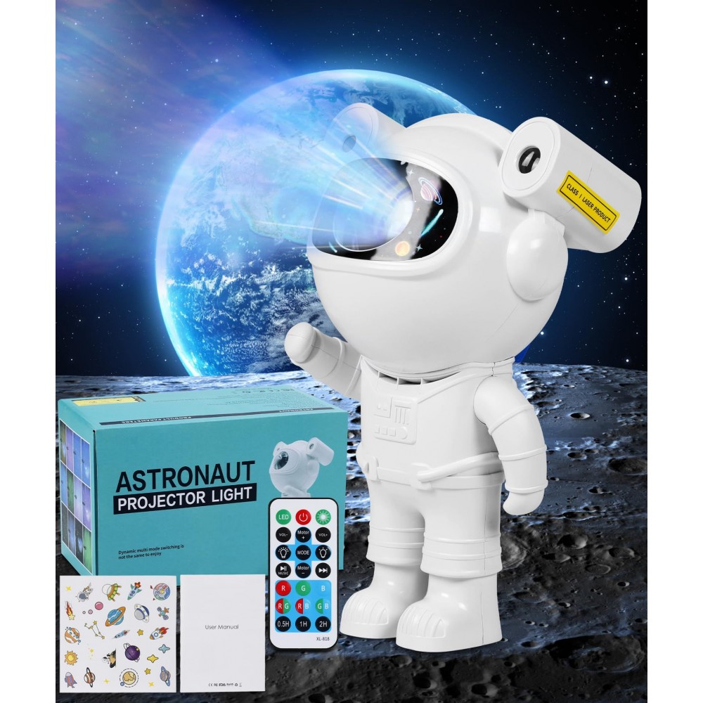 Il design unico a forma di astronauta lo rende un elemento decorativo fantastico anche quando è spento. È controllato tramite un telecomando per cambiare modalità, colori, e timer. È l'ideale per la camera da letto, la sala giochi o per creare un ambiente da cinema in casa.